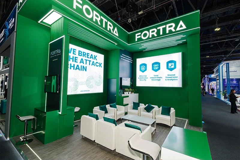 With a deep understanding of tech-driven events, our team—recognized among the top event management agencies in the UAE—designed a stand that served both as a product experience zone and a brand stronghold. As seasoned exhibition stand contractors, we transformed Fortra’s vision into a visually striking and tactically functional space.