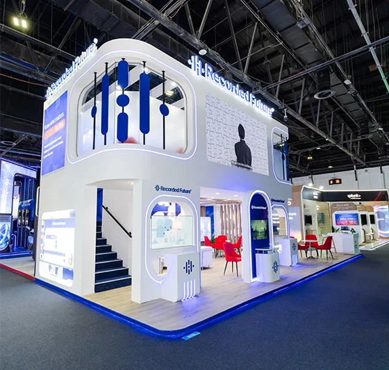 Known for combining creativity with executional precision, Markable, as a top-rated event management agency and exhibition stand contractor, delivered a stand experience that was not only visually striking but functionally engineered to reflect Recorded Future’s bold, data-driven brand identity. Every design element—from the color palette to the motion-infused visuals—aligned with the client’s official media and communication guidelines.